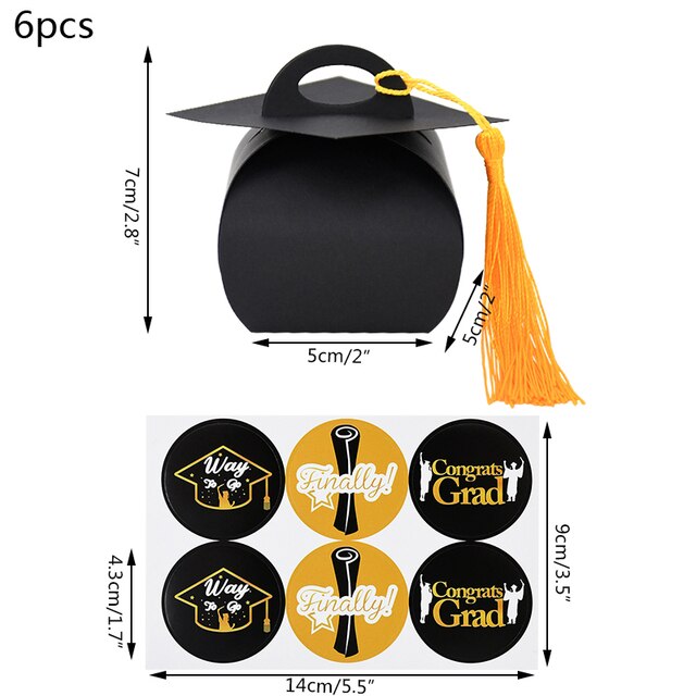 6/12pcs NEW High Quality European Bachelor Hat Cap Bag Candy Box Graduation Celebration Party Candy Favor Gift Boxes