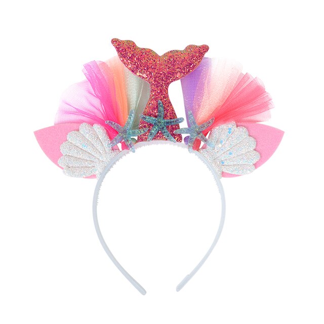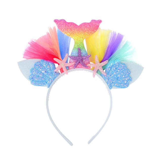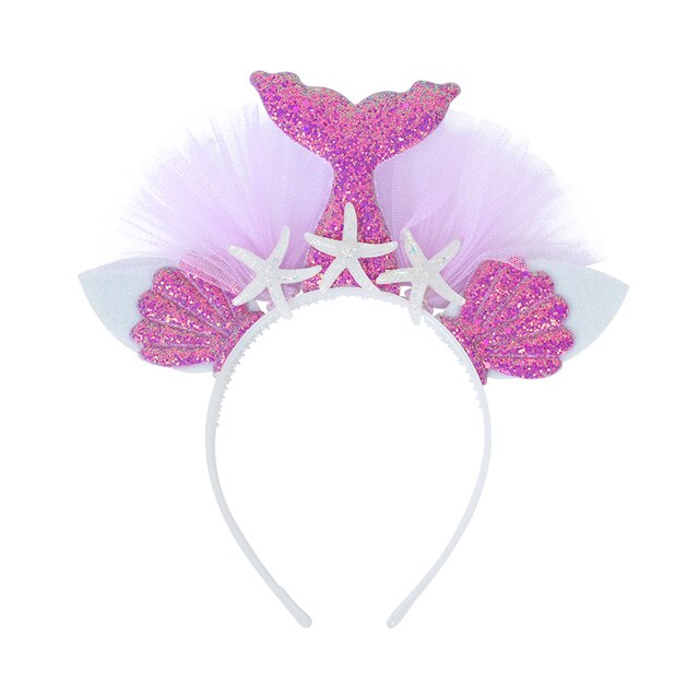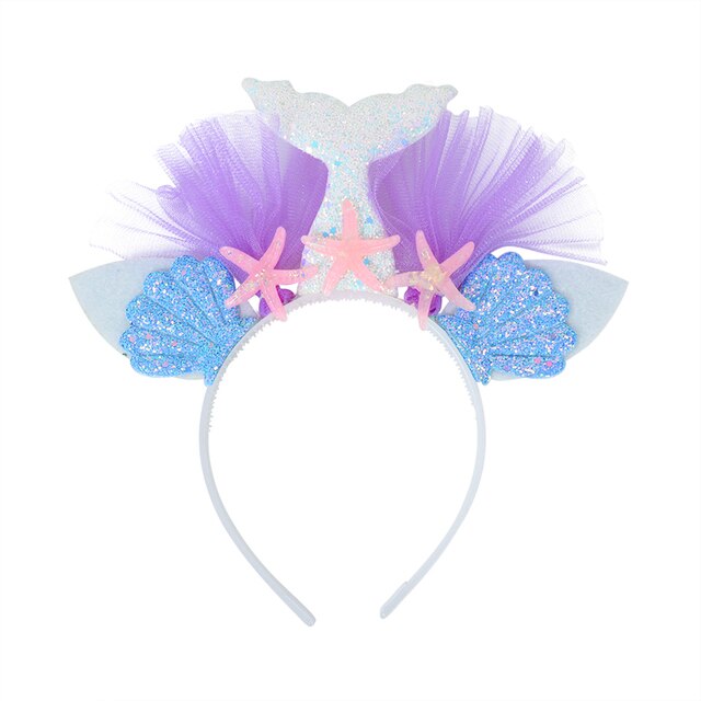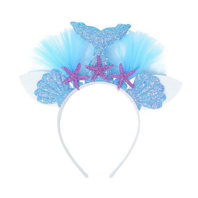 Little Mermaid Party Crown Headband Starfish Shell Mermaid Tail Hat Photo Props for Girl 1st Birthday Party Mermaid Hair Band
