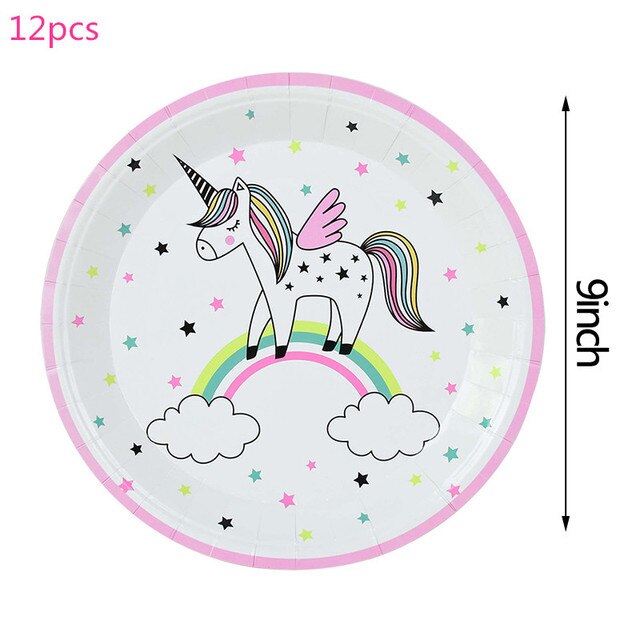 Unicorn Theme Disposable Party Tableware Set Paper Plate Cup Straw Happy Birthday Baby Shower Girl Decorations Kids Supplies