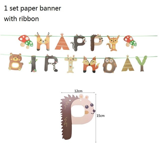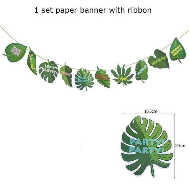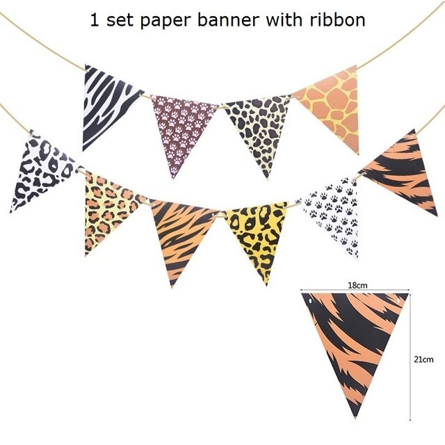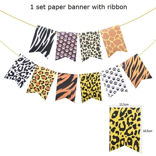 1Set Jungle Birthday Banners Animal Garland Birthday Paper Pennant Palm Leaf Flags Bunting Baby Shower Safari Animals Decoration