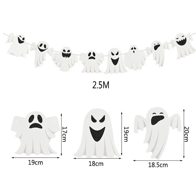 1Pcs Halloween Party Banner Pull Flags Ghost Pumpkin Bat Spider Pull Flag Haunted House Bunting Decoration