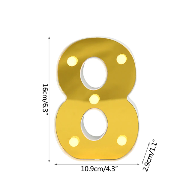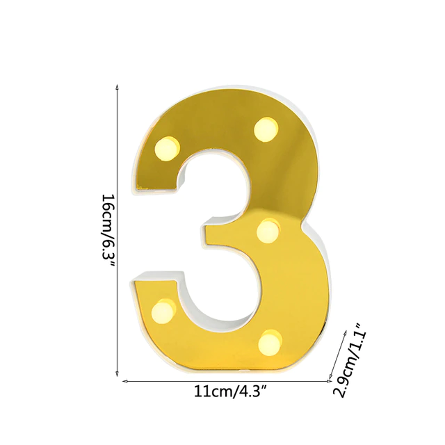 LED Gold Luminous Digital Number Letter Night Light Battery Lamp Diwali Christmas Wedding Birthday Party Propose Decoration